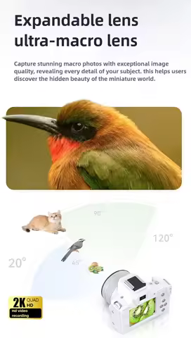 Mini DSLR Digital Camera 2K Ultra High Definition 48 Megapixel with Dual Cameras, Beauty Fill Light Selfie Camera CCD Camera