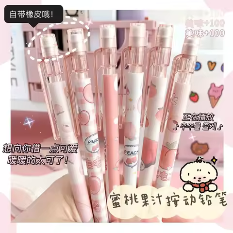 Student Cute Pink Peach Writing Tool 0.5/0.7mm Press Pen Mechanical Pencil Movable Pencil Automatic Pencils korean stationery