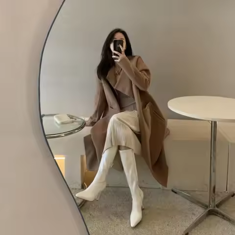 Women High Boots Fashion Pointed Toe Ladies Elegant Square High Heel Long Boots Short Plush Women Square Toe High Stretch Boots