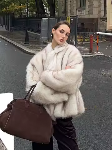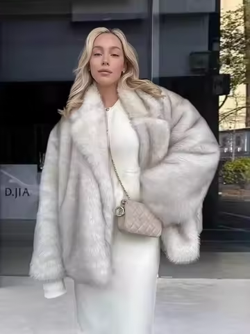 Women Lapel Faux Fur Coat Elegant Luxury V-neck Long Sleeve Loose Fluffy Outerwears Lady Fashion Winter Daily Highstreet Jackets