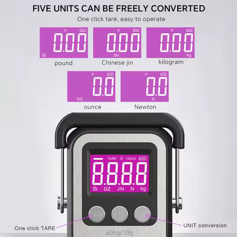 60Kg/10g LCD Digital Display Hanging Scale Handheld Mini Electronic Rechargeable Weighting Scale Fishing Travel Luggage Scale