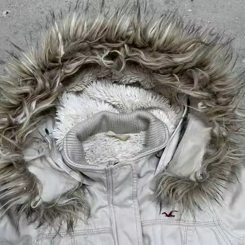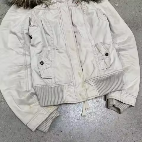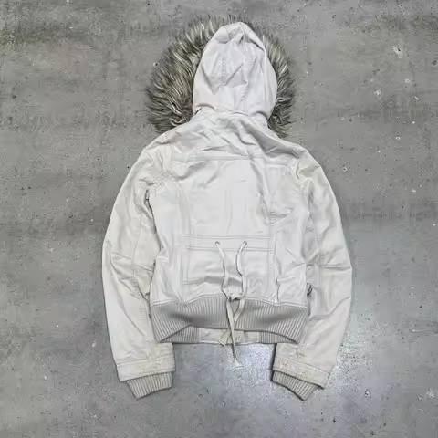 American Street Style Retro Fur Lined Hooded Jacket Womens White Zipper Coat Warm Plush Gothic Fashion Casual Y2K Style Coats