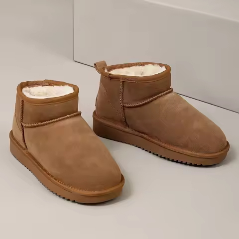 New Fashion Snow Boots Genuine Cow Leather Ankle Boots Warm Winter Women Shoes Non-slip Soles Woman Boots No Logo