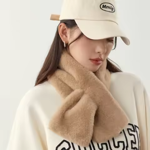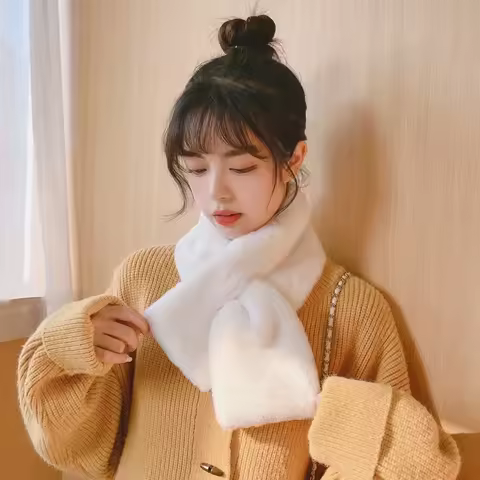 Plush Cross Scarf Faux Rabbit Fur Thickened Soft Scarves Solid Color Autumn Winter Cold Resistant Women Neck Warmer Collar Scarf