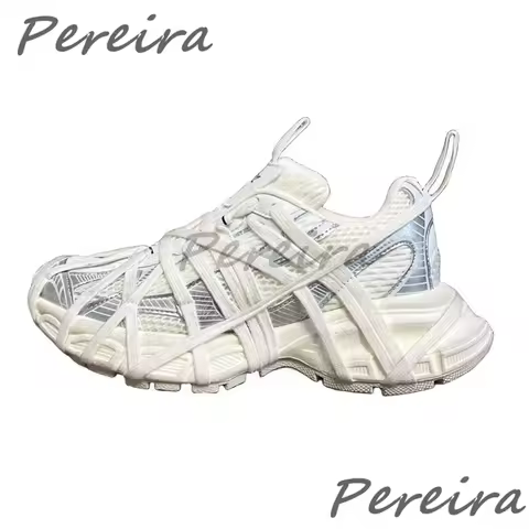 Mesh Thick Soled Casual Sneakers for Men Women Summer Breathable Lace Up Sports Shoes Trendy Cross Strap Outdoor Couple Shoes