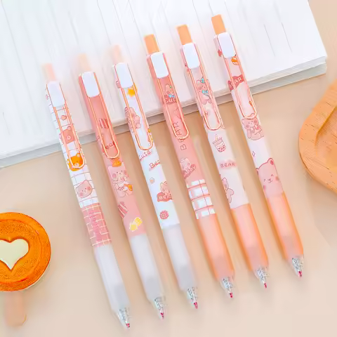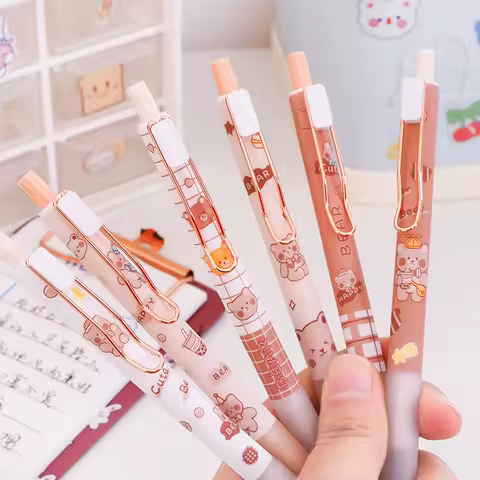 Cute Cartoon Bear Gel Pens Kawaii 0.5mm Black Ink Neutral Pens Korean Stationery Writing Tool School Office Supplies Gel Pen