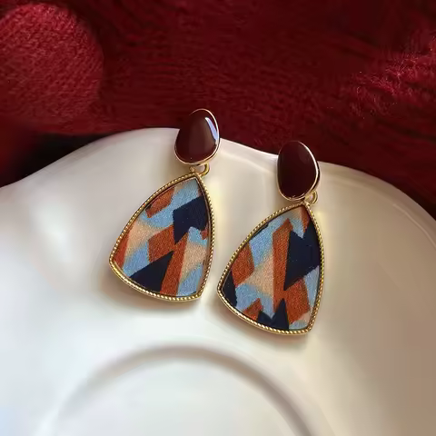 Vintage Wine Red Stud Earrings For Women Korean Geometric Earring High Sense Wedding Party Jewelry Gift