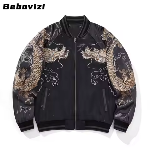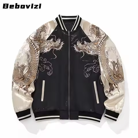 Men's Japanese Style Baseball Jacket 2025 Raglan Sleeve Dragon Tiger Embroidery Autumn Fall Streetwear Vintage Bomber Coat