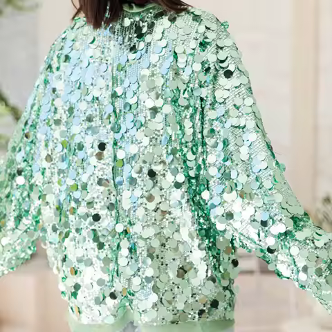 Lamuusaa Sequin Jackets y2k Women Clothing Sparkling Front Wrap Tie V Neck Long Sleeve Coat Tops Club Party Clothes Streetwear