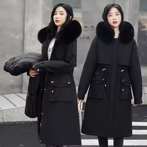 2024 New Women Winter Jacket Long Coat Casual Parkas Removable Fur Lining Hooded Parka Cotton Thicken Warm Jacket Snow Wear Y941