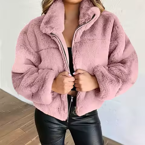 Jackets Women 2021 Fashion Hot Style Europe autumn/winter Rabbit Hair Imitation Leather Zipper Fluffy Warm Women Coats YUC0013