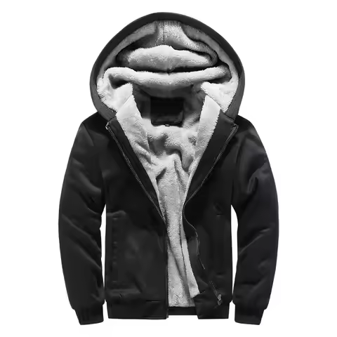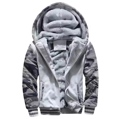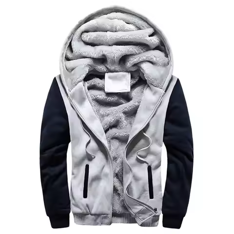 Men's Warm Jacket Fleece Zipper Hooded Sweatshirts Outdoor Warm Tops Men Patchwork Cardigan Winter Thick Outwear for Men