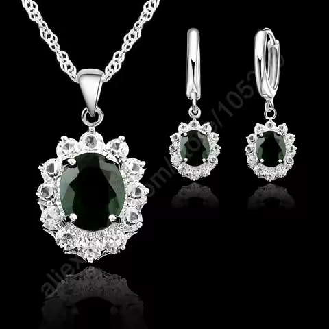 925 Sterling Silver Elegant Flower Shape Women Wedding Necklace Earring Jewelry Sets Navy Blue Cubic Zirconia Girls Gifts