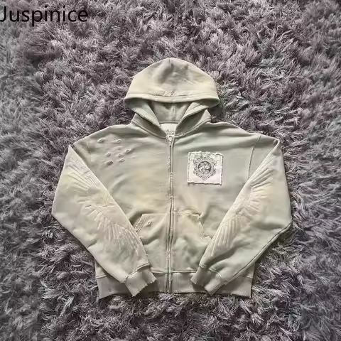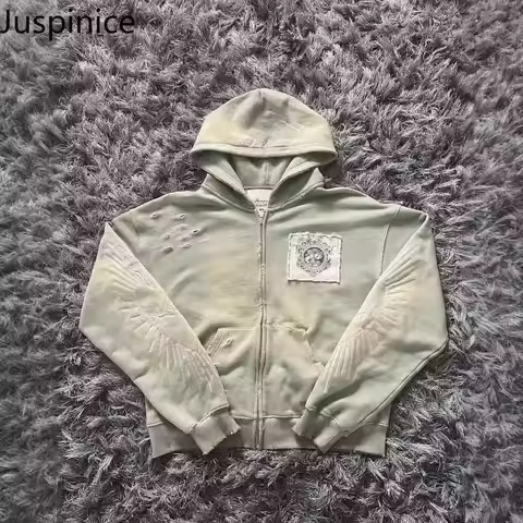 Juspinice Korean Fashion New Printed Hoodie Short Hoodie 2025 New Versatile Zipper Cardigan Jacket Male Clothing