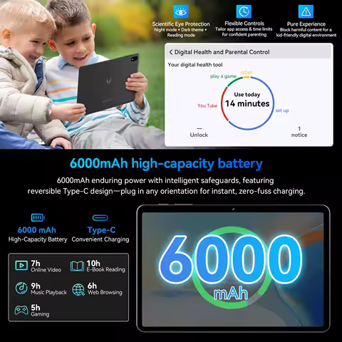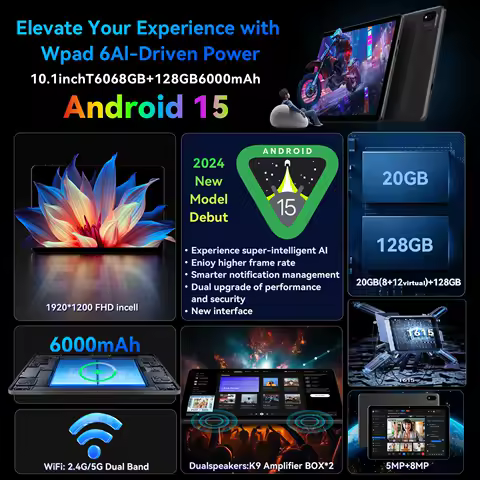 Headwolf WPad6B Android 15 WiFi Tablet 10.1 inch T615 CPU, FHD 1920 * 1200, 8+12GB RAM + 128GB ROM/Widevine L1/6000mAh