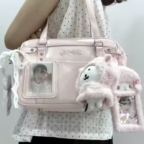 2025 New Uniform Hollow Painful Bag Pink Large Capacity Student Daily School Bag Trendy Idol Youth Campus Bag JK Casual Tote Bag