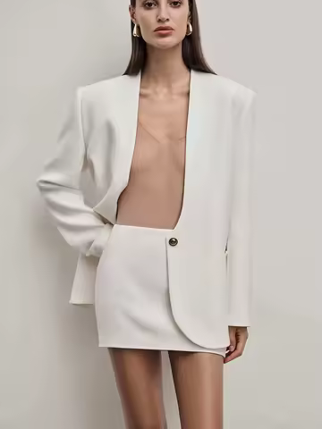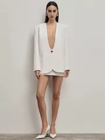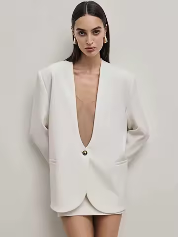 Mozision Deep V Neck Long Sleeve Sexy Blazer Jacket Women Elegant Office Lady Elegant One Button Blazers Jackets Slim Coats