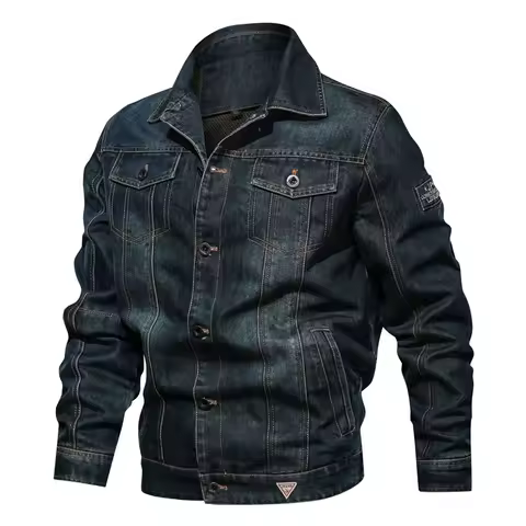 Men Denim Jacket Military Tactical Jeans Bomber Jacket Solid Casual Slim Fit Air Force Pilot Coat Casaco Masculino