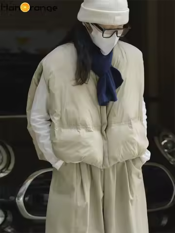 HanOrange 2024 Autumn Winter O-neck Vest Women Loose Profile Fluffy Warm Sleeveless Top Jacket Female Black/Blue/Light Apricot