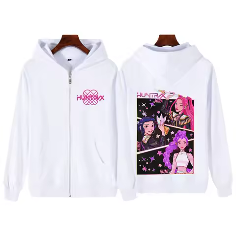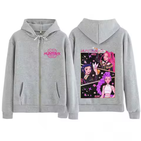 KPOP Demon Hunters Double-sided Graphic Zip Up Hoodies Men Women Harajuku Sweatshirt Long-sleeved Aesthetic Casual Zipper Jacket
