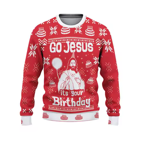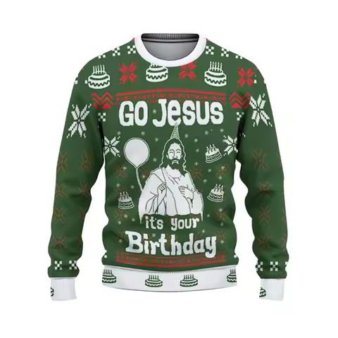 GO Jesus It's Your Birthday Xmas Sweatshirt 3D Print Festival Theme Loose O-neck Ugly Sweater Merry Christmas Jesus Graphic 2026