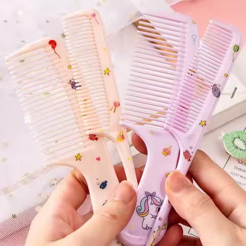 2pc Set Cartoon Children's Comb for Baby Girls Cute Kids Anti-Static Plastic Hair Comb Hairdressing Pointed Tail Combs Baby Care