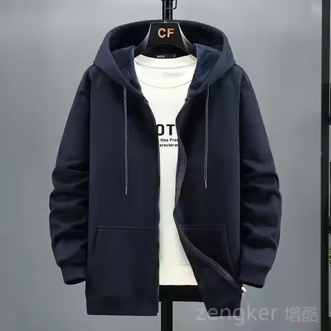 Big size Fleece hooded cardigan men's autumn winter trendy fashion jacket plus size hoodie 12XL 10XL large size men clothing