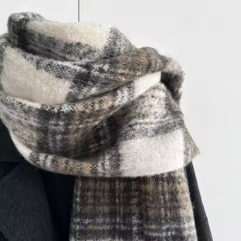 2. Colorful Seahorse Fur Plaid Scarf Men Women Winter Warm Scarf Thick Seahorse Fur Scarf Tassel Shawl Sjaal Sciarpa 4w933