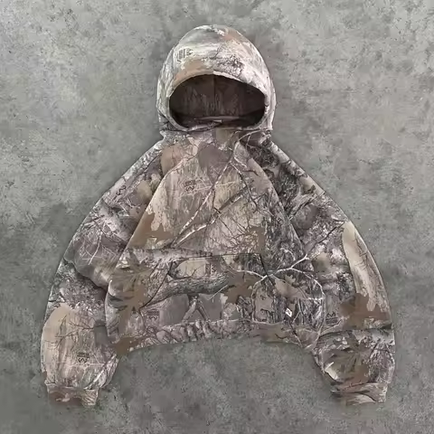 Y2K Retro Hoodie Men Printed Camouflage Pattern Pullover Sweatshirts High Street Hip Hop Streetwear Oversized Unisex Camo Hoodie