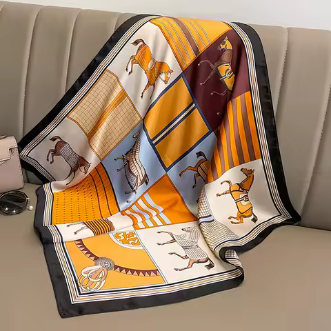 2024 Design Fashion Square Silk Scarf Women Hairband Printed Small Satin Shawls Foulard Neckerchief Female Headbands Bandana