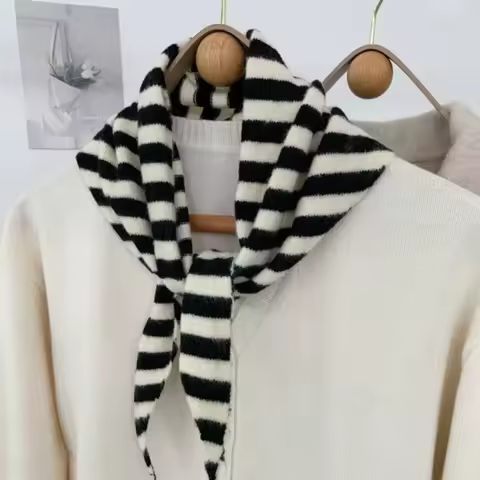 2024 Colorful Stripes with Wool Triangular Binder Decorative Knitted Small Scarf Soft Multi-Functional Small Scarf Collar