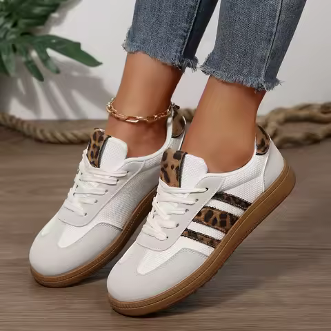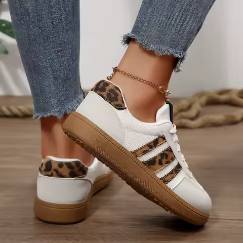 Fashion Leopard Striped Print Sneakers Women 2025 Autumn Non Slip Flat Heels Casual Sport Shoes Woman Platform Trainers Woman
