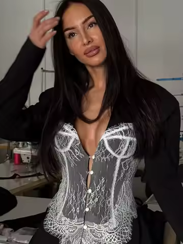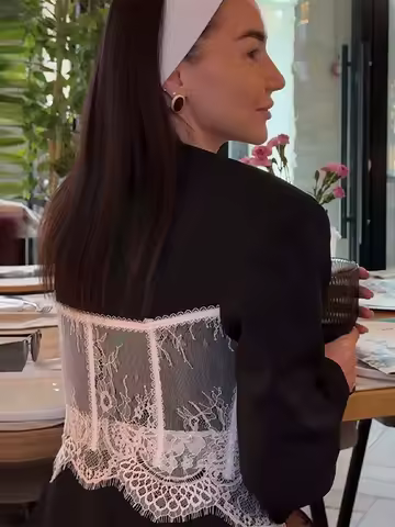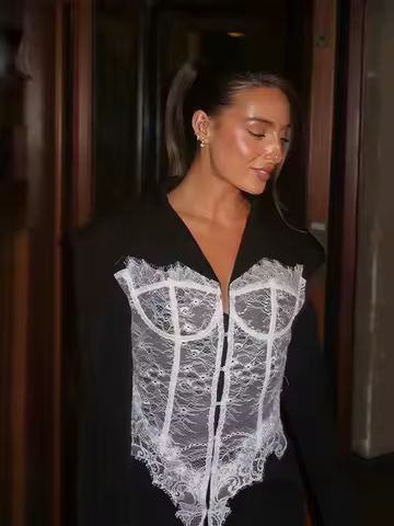 Lace Deep V Long Sleeve Suit Jacket Women Sexy Shoulder Pad Sleeves Single Breasted Waist Cinching Jackets Hot Girls Outerwear