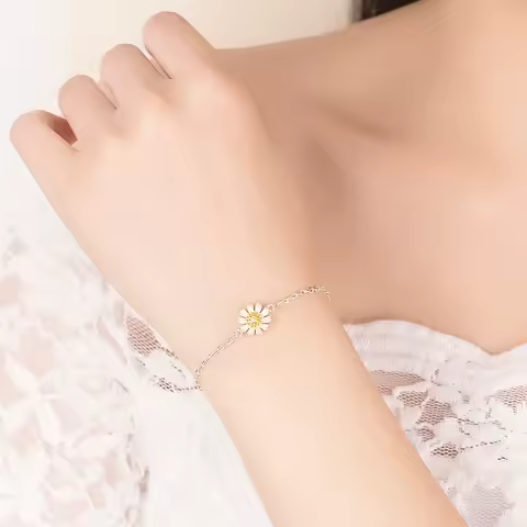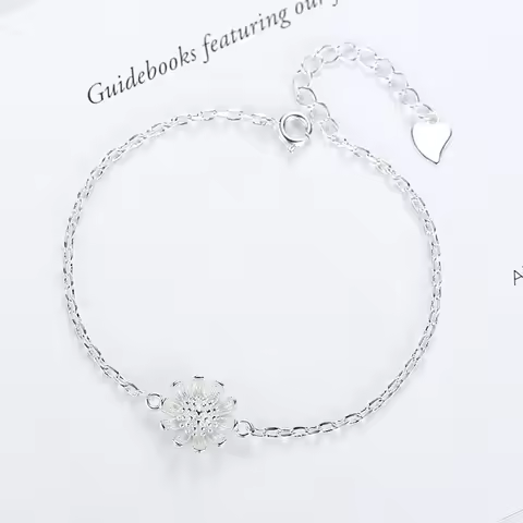 S925 Sterling Silver Bracelet Simple Sunflower Small Daisies Chrysanthemum Sunflower Bracelet Jewelry Gift For Women