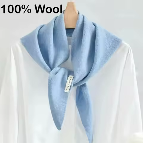 100% Australian Wool Knitted Triangle Scarf Shawl Women's Autumn Winter Warm Neck Protection Scarf Decorative Small Scarf