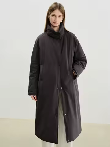ZIQIAO Petite Women Long Stand Collar Korean 90% Down White Duck Feather Jacket 2025 Winter New Arrival Long Lenghth Down Coats