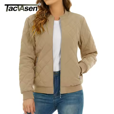 TACVASEN Padded Warm Jackets Womens Fashion Retro Pilot bomber Jackets Diamond Quilted Coats Full Zip Up Pockets Casual Outwear