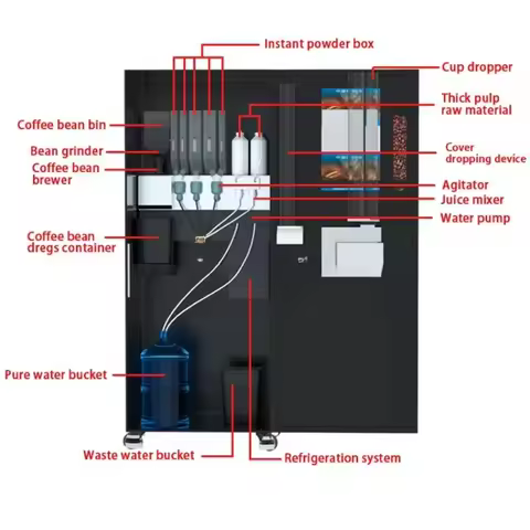 Vending Machine Hot/Cold Freshly Ground Coffee & Fruit Syrup Drinks Smart Self-Service Coffee Machine with Grinder