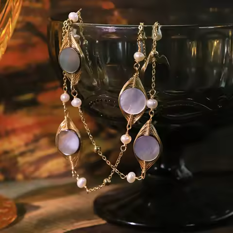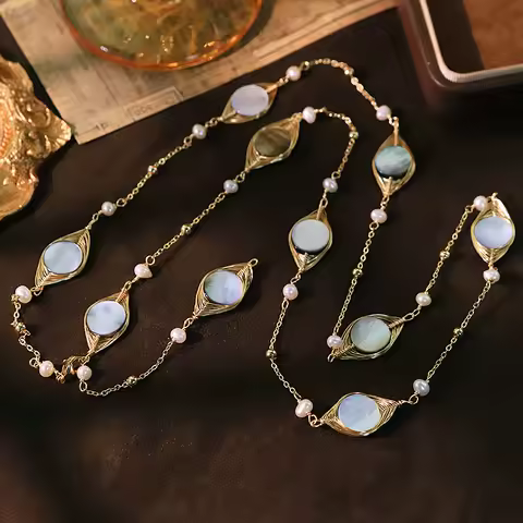 Natural Freshwater Pearl Shell Copper Bead Sweater Chain Handmade Design High-Quality Necklace Gift for Women Jewelry GN0820