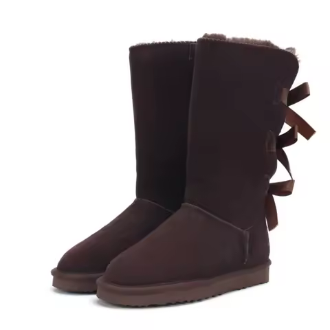 Snow Boots Genuine Leather Warm Men Women Boots Shoes Fashion Three Bows Tie High Boots Women Winter Warm Fur Boots Size 34-45