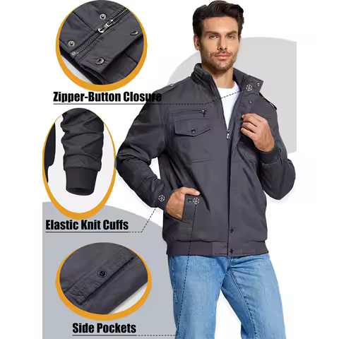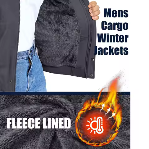 MAGCOMSEN Men's Fleece Jackets Windbreaker Coats Fall Winter Thermal Bomber Jackets Multi-pockets Stand Collar Motorcycle Jacket