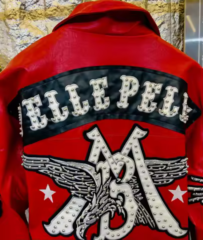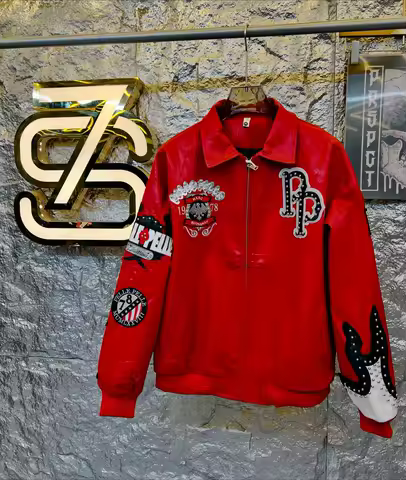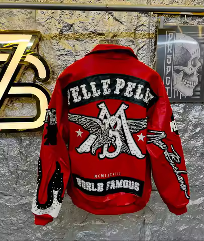 Streetwear Retro Rhinestone Patch Embroidered Red Jacket Y2K Mens Letter Embroidered Oversized Motorcycle Clothes Casual Coats
