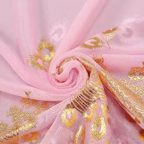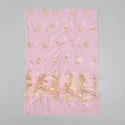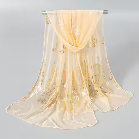 Women Glitter Thin Muffler Solid Color Elegant Hijab Scarf Chiffon Long Scarves Gold Peacock Print Wrap Shawl Georgette Scarf
