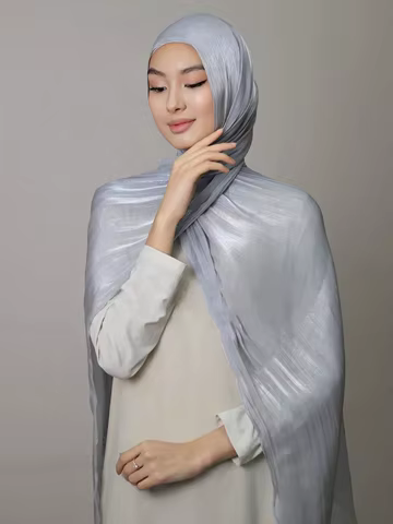 Shimmershawl Silk Hijab Scarf Breathable Cool Island Satin Medine Silk Veil Muslim Hijab Shiny Silk Shawl Women's Scarves Tippet