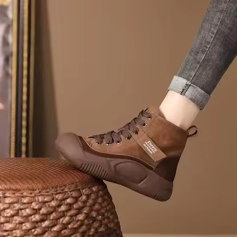 2024 Women Vulcanized Shoes Autumn Women's High Top Sneakers Winter Lace-up Round Toe Casual Thick Sole Non-slip Women's Shoes