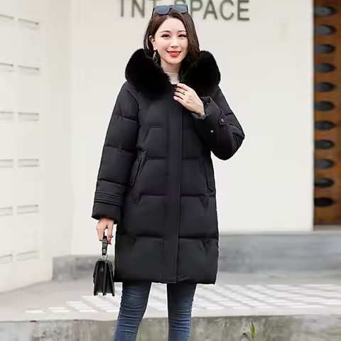 Winter Coat Down Jacket Women's Fashion Medium Long Solid Hooded White Duck Down Thickened Warm Coat Winter Coat Women Coat 2022