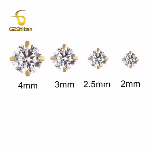 2-4mm Zircon Cartilage Tragus Helix Lobe Earring 16G Titanium Ear Stud Lip Piercing Ring Internally Threaded Labret Goth Jewelry