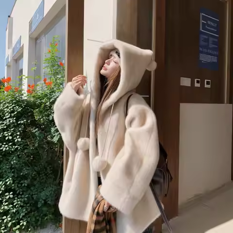2025 Winter Women Faux Fur Jackets Hooded Coat Thick Warm Fluffy Lady Mink Fur Outerwear Shaggy Chic Female Eco Fur Overcoat