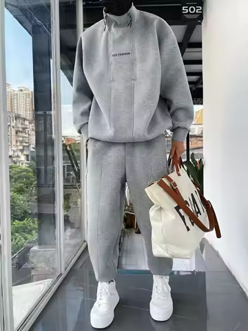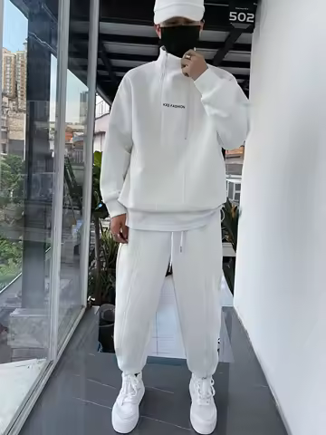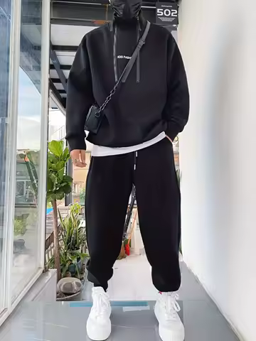 2025 Autumn Winter New Casual Elastic Waist Men Fashion Suit Splice Hoodie and Pants Casual Sports Hipster Handsome 2 Pieces Set