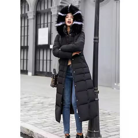 Long Down Cotton Parkas Coat Female New Winter Over Knee Loose Large Fur Collar Hooded Warm Thick Parkas Women Padded Overcoat